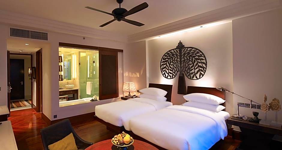 Offering city views of Siem Reap, air-conditioned room features Khmer-inspired contemporary art, custom furniture and summery decor. Room includes a flat-screen satellite TV with DVD player, Nespresso coffeemaker and welcome fruits upon arrival. It also comes with a private bathroom that features Italian marble flooring, an alcove tub, a separate shower area with a rainfall shower head, dual vanities and luxury amenities by Cochine.